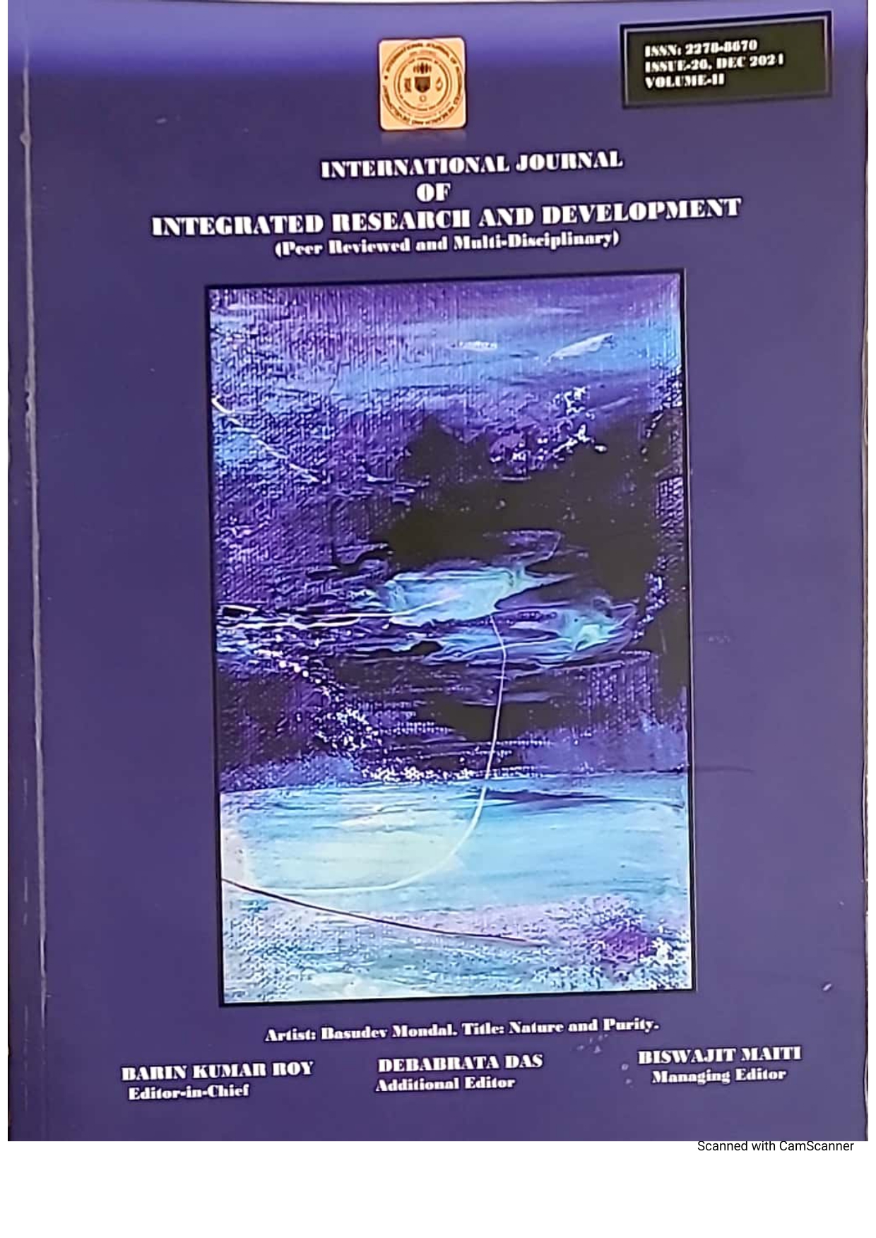 International Journal of Integrated Research and Development (IJIRD) is inuttidis ciplinary journal which publishes Research Paper, Review Paper, Case Studies, Thesis/Dissertation from all fields like Science, Humanities, Health Science, Engineering, Management etc.